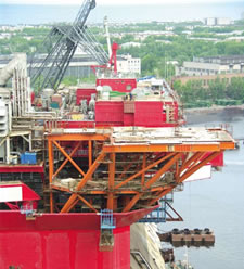 Завершился первый этап строительства уникальной морской ледостойкой платформы «Приразломная» – этап заводского изготовления. В ноябре МЛСП переведена с акватории Севмаша в Мурманск на 35-й судоремонтный завод для окончательной достройки, проведения пусконаладочных работ и бетонирования.