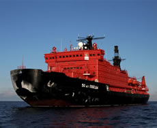На атомном ледоколе «50 лет Победы» впервые применена новая ложкообразная форма носовой оконечности. Как показали расчеты проектировщиков, такая конструкция поможет с большей эффективностью взламывать ледовый покров.