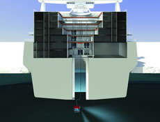 Another unique characteristic of Aurora Borealis design are the two seven by seven metres moon pools. These are continuous vertical funnels in the midst of the hull going into the water below the vessel, enabling scientists to deploy their equipment into the ocean without being subject to wind, waves and ice. The aft moon pool is mainly dedicated to drilling operations, while the forward moon pool is reserved for most other scientific works. This allows, for the first time, deployment of very sensitive and expensive equipment, such as remotely operated or autonomous underwater vehicles, within closed sea ice cover. Scientific laboratories are located on several decks around the moon pool, which is designed in an atrium-like shape with circular walkways and preparation areas. In order to optimally equip the ship for all kinds of specialised expeditions, containerised laboratories can be also loaded here and become fully integrated into the scientific workflow on board.